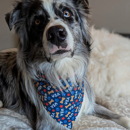 Unleash your pup's patriotism with our collection of red, white, and blue dog bandanas!